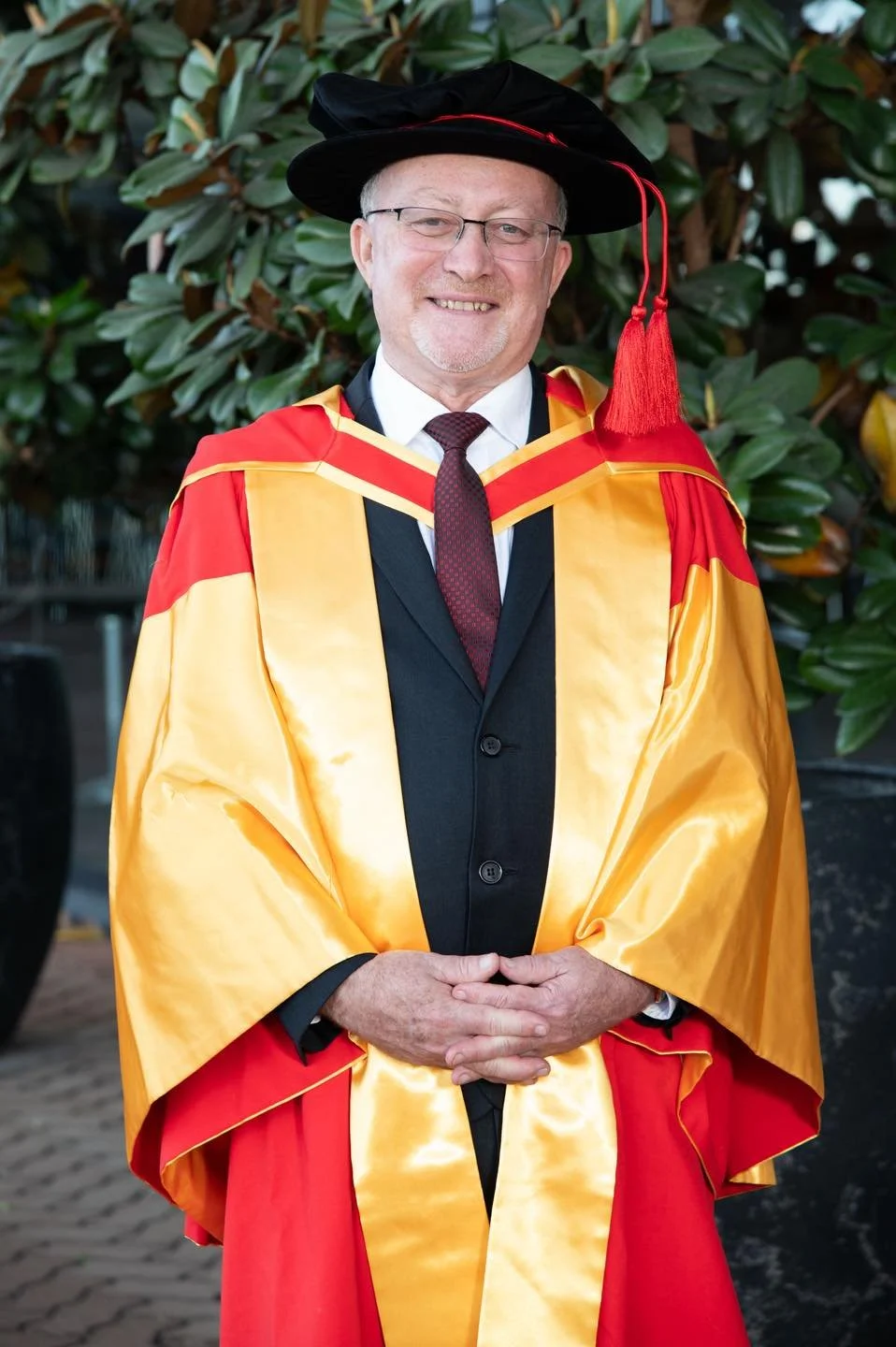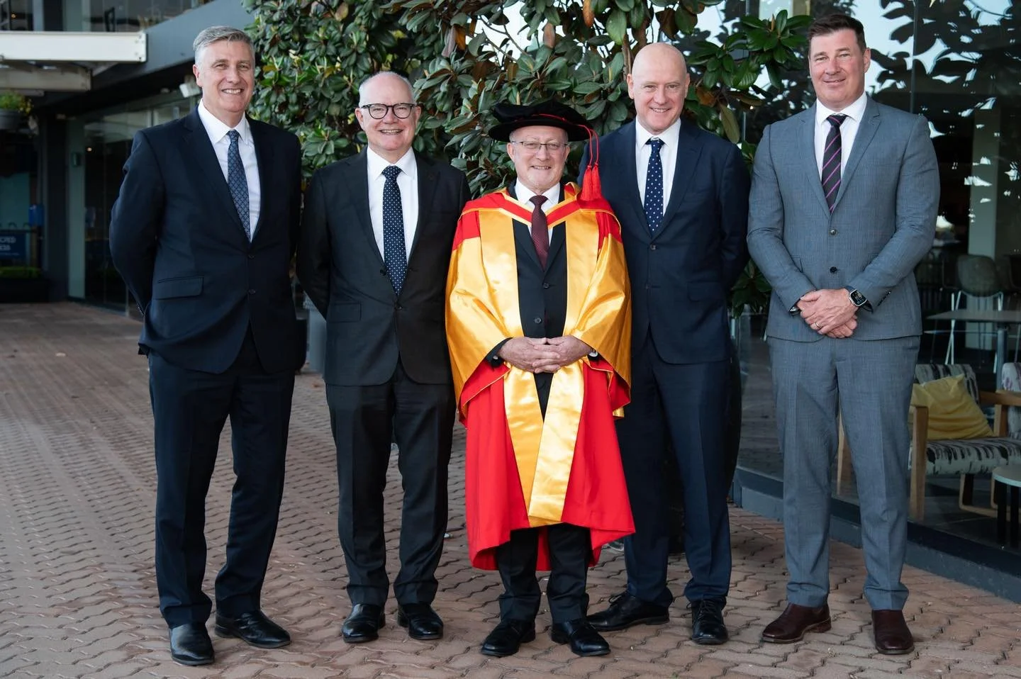 Br Michael Green receiving the degree from Hon Martin Daubney AM KC, Chancellor of the University.