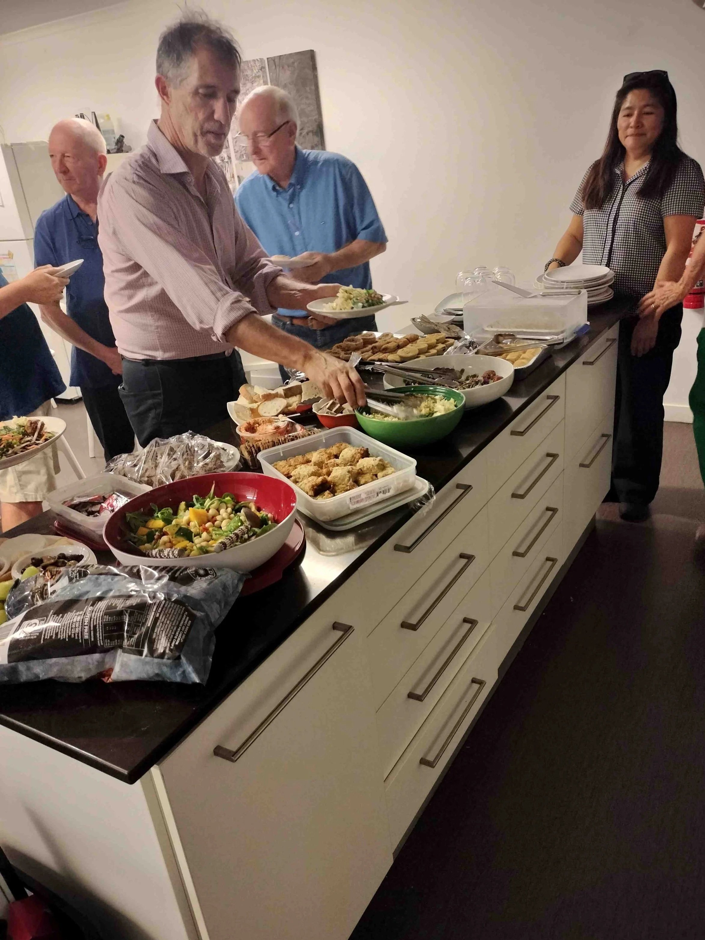 As we gathered around the kitchen, variously helping set up, warm up or plate up, it was observed that we seemed to somehow make it work.