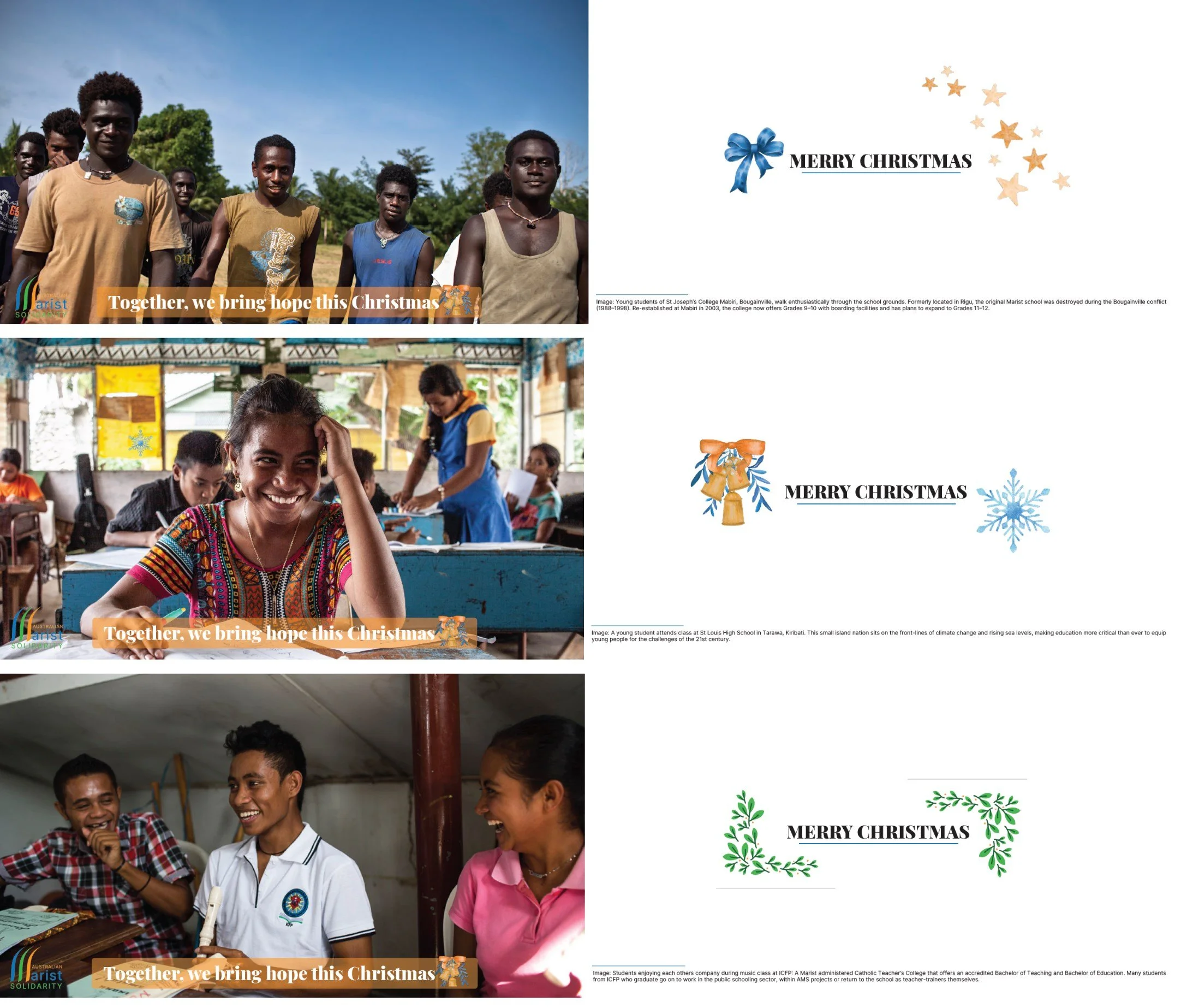 Australian Marist Solidarity are thrilled to announce their 2026 Calendar and packs of ten Christmas Cards, featuring images from our project sites in Asia and the Pacific. Learn more about the projects we support across the Star of the Sea Province while supporting inclusive education within the region.